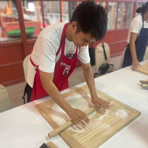 その後、日本で珍しい食べ物の一つである「そば(蕎麦)」の製麺体験もさせていただきました。そば粉から麺になるまでの工程を先生が丁寧に教えてくださり、自分でこねること、延ばすこと、麺を切ることなど、一つひとつの作業を順を追って学ぶことができました。