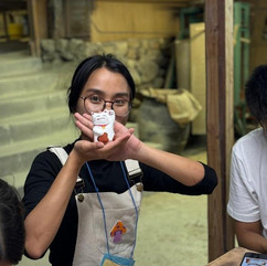 私たちは型に自分たちのデザインを彫り、そこに粘土の混合液を流し込み、硬化させました。その後、余分な粘土を丁寧に切り取り、完成したお香立ての蓋が姿を現しました。これも乾燥させ、最後に焼成して仕上げます。