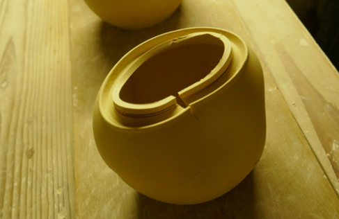 その後、急須のさまざまな部品が接続され、最終的に焼成のためにスタッフに引き渡されます。