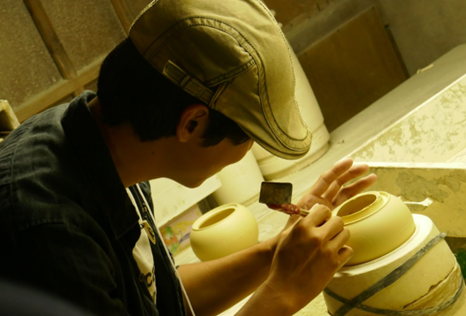 まずは鉛筆で好きな模様を描き、その後筆で色を塗ります。着色する際は、同じ場所に何度も着色しないように注意する必要があります。そうしないと、陶器の表面に高低差が生じます。したがって、着色するときは細心の注意を払う必要があります。